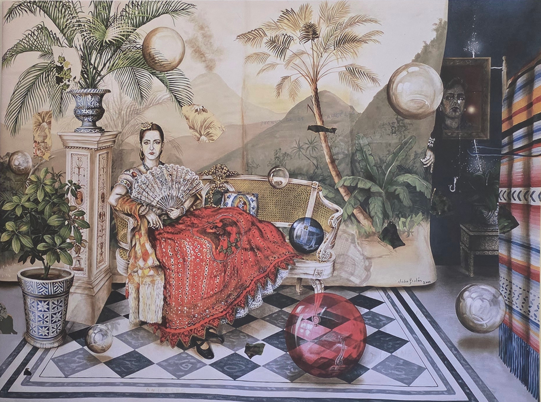 - El Retrato de Elizabeth (2000), donado por Valeriano Gutiérrez y Silvia Ávalos. En esta obra, Elizabeth posa con vestido rojo y abanico frente a un fondo tropical pintado como telón de estudio fotográfico, mientras el propio Julio Galán se asoma discretamente detrás de la cortina, como un guiño lleno de ternura y misterio.